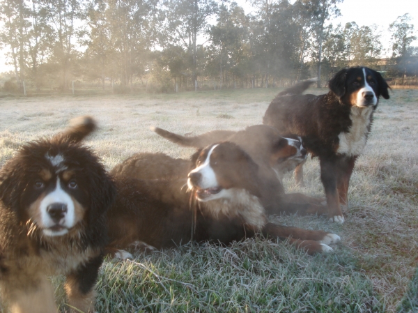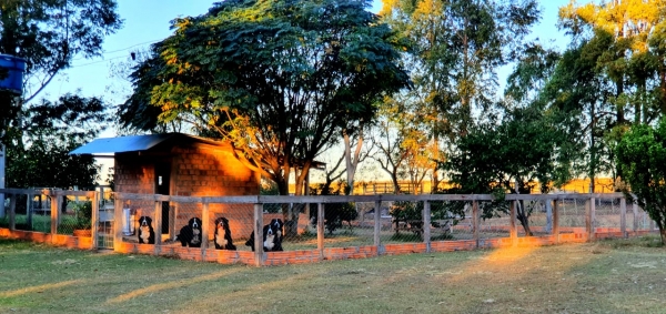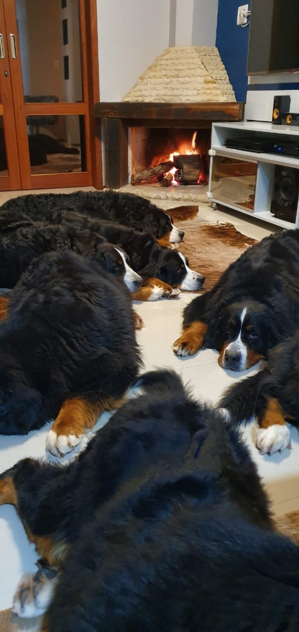 Eles não vivem confinados em baias. Para nós, o Bernese é um cão sem evidências de misturas com outras raças, o que o torna uma raça primitiva e autêntica. Por isso, seguimos um conceito de seleção e desenvolvimento livre em matilha, permitindo que eles cresçam de forma natural e equilibrada.